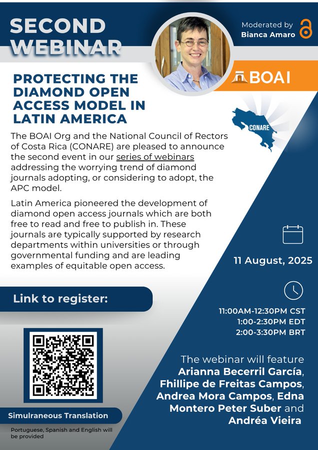The webinar aims to highlight and discuss the importance of protecting the Diamond Open Access model in Latin America, a region that leads the world in developing non-commercial, university-led scholarly publishing where neither authors nor readers pay fees.